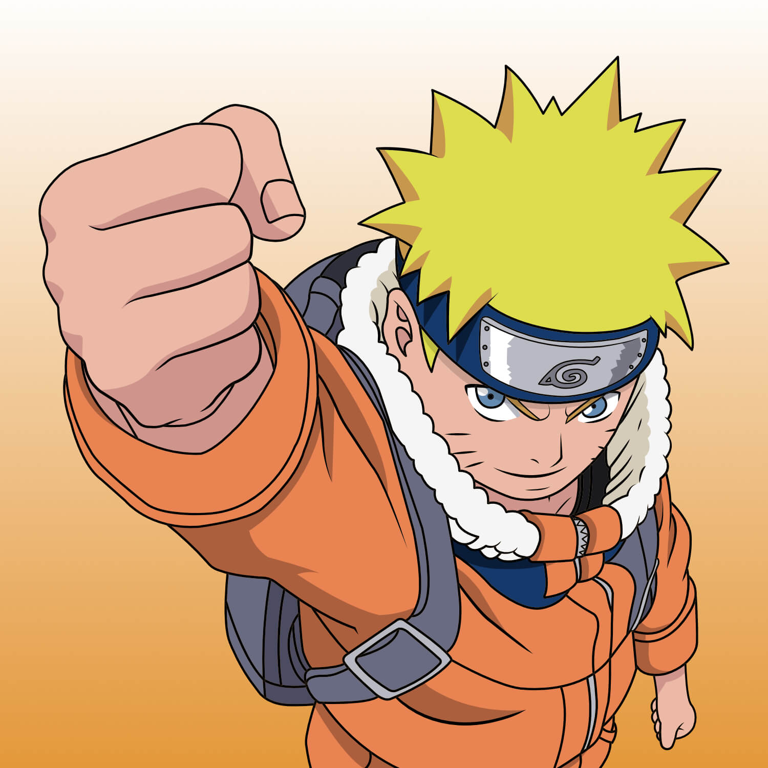 Fan Art de Naruto Uzumaki de la serie con el mismo nombre, creado y pintado digitalmente con Adobe Illustrator. Realicé este fan art en el año 2021, desde el line art hasta el coloreado y texturizado, todo de manera vectorial.