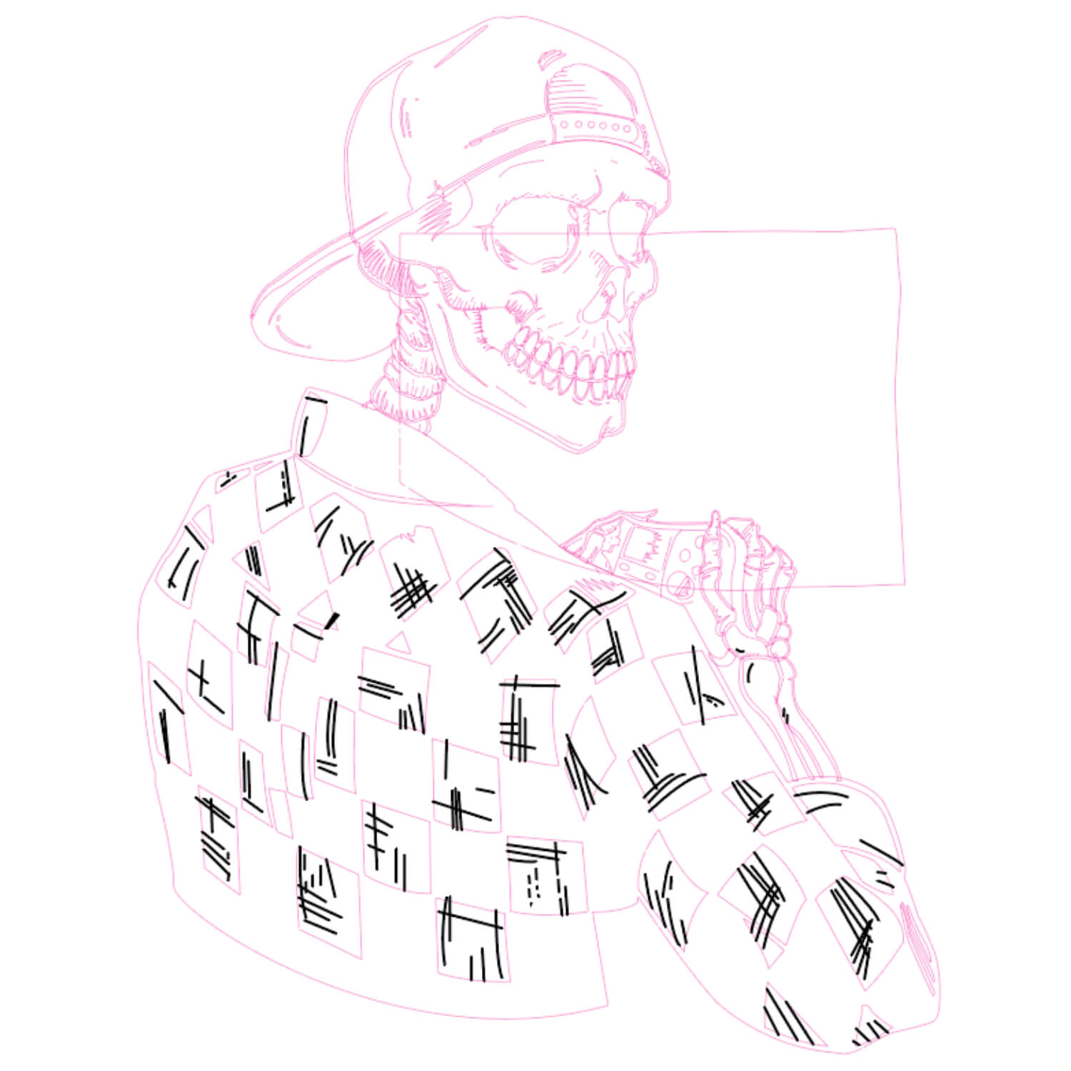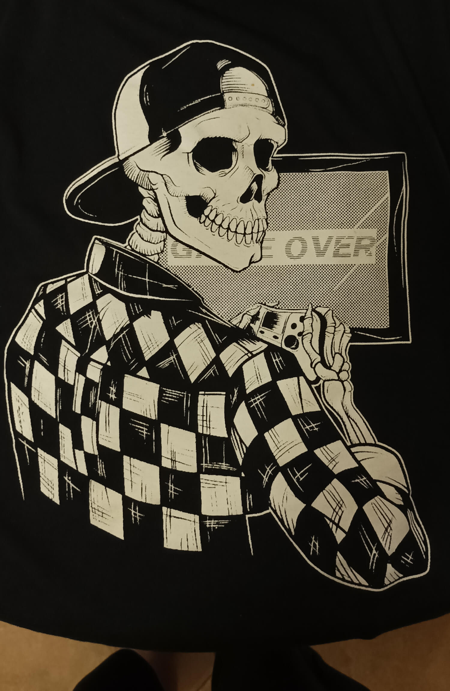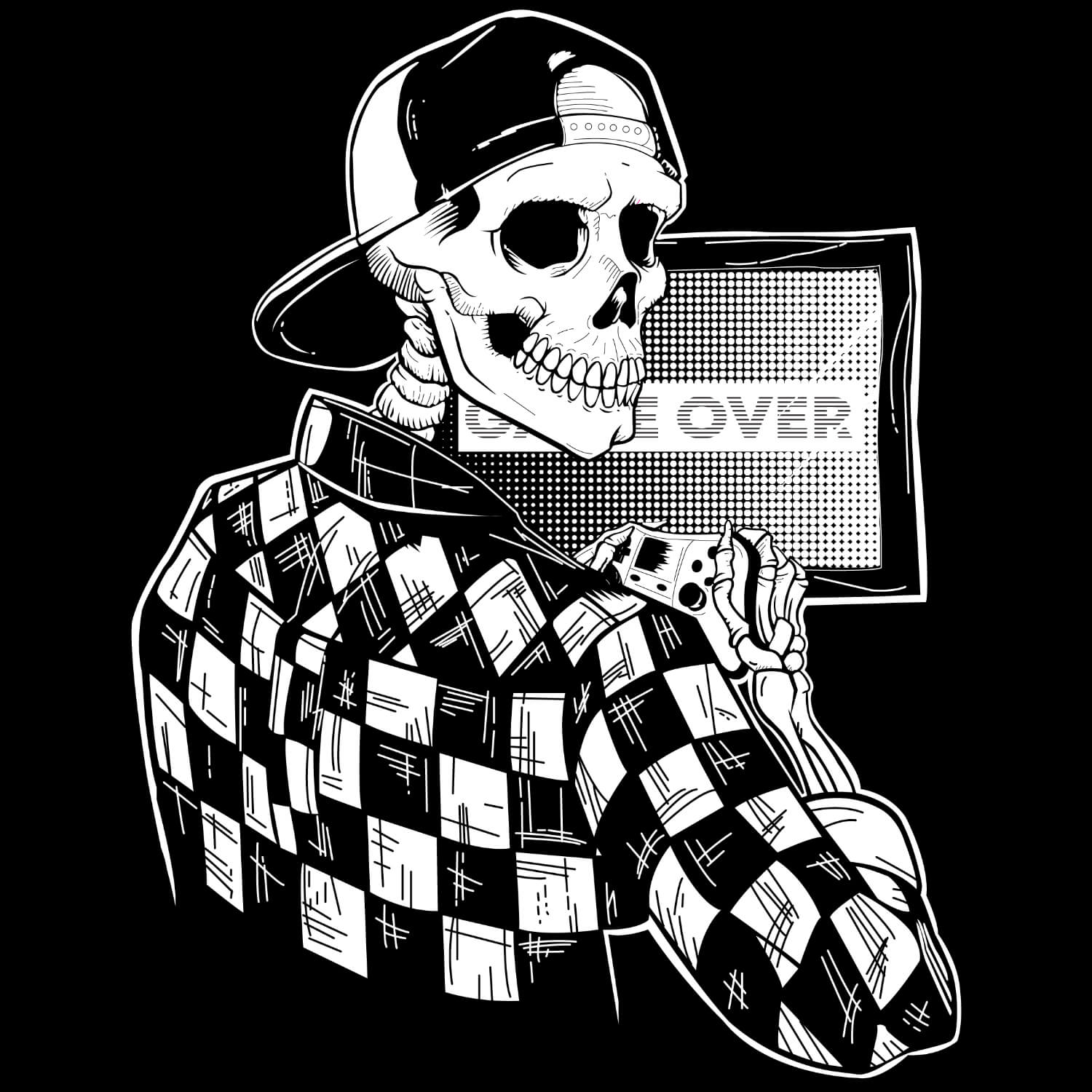A long time ago I bought several short-sleeved t-shirts, among them I really liked that design of Skeleton Gamer and decided to vectorize it. It took me 2 days to vectorize it due to the difficulty of the illustration, I made it as close as possible to the original design.