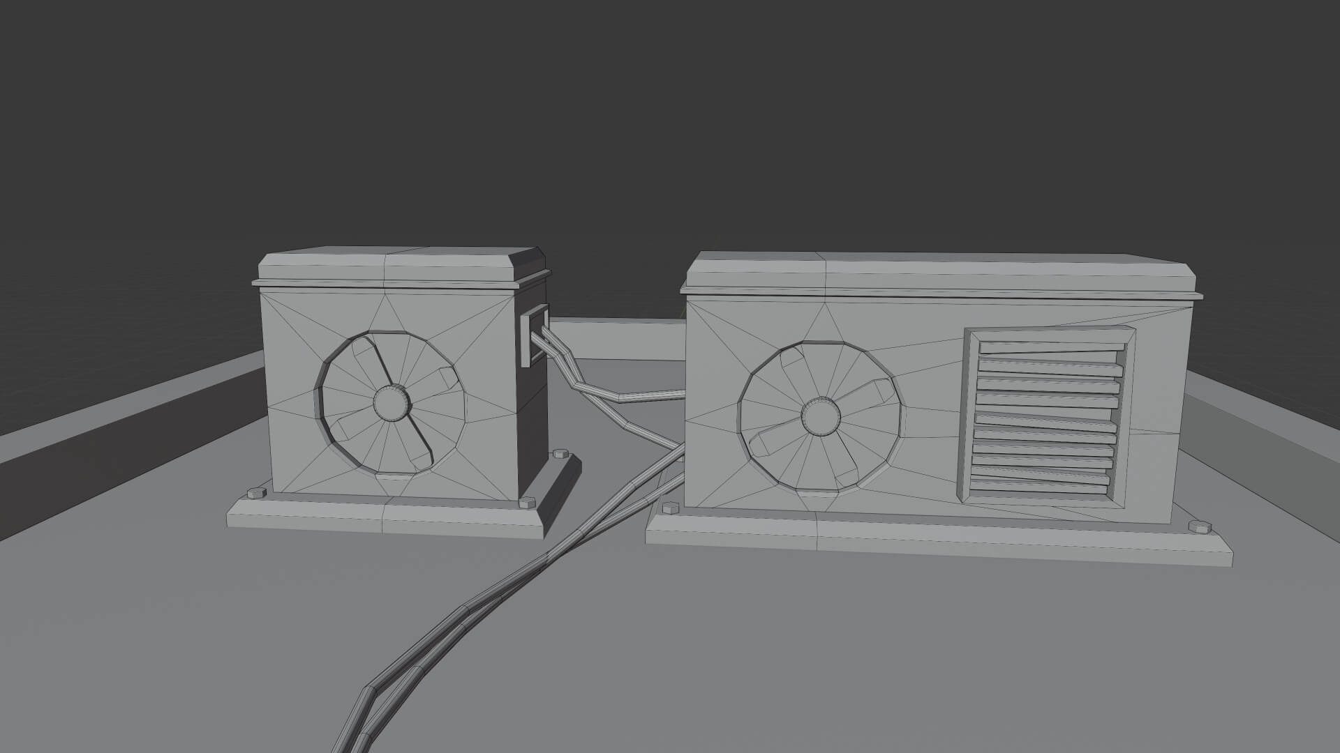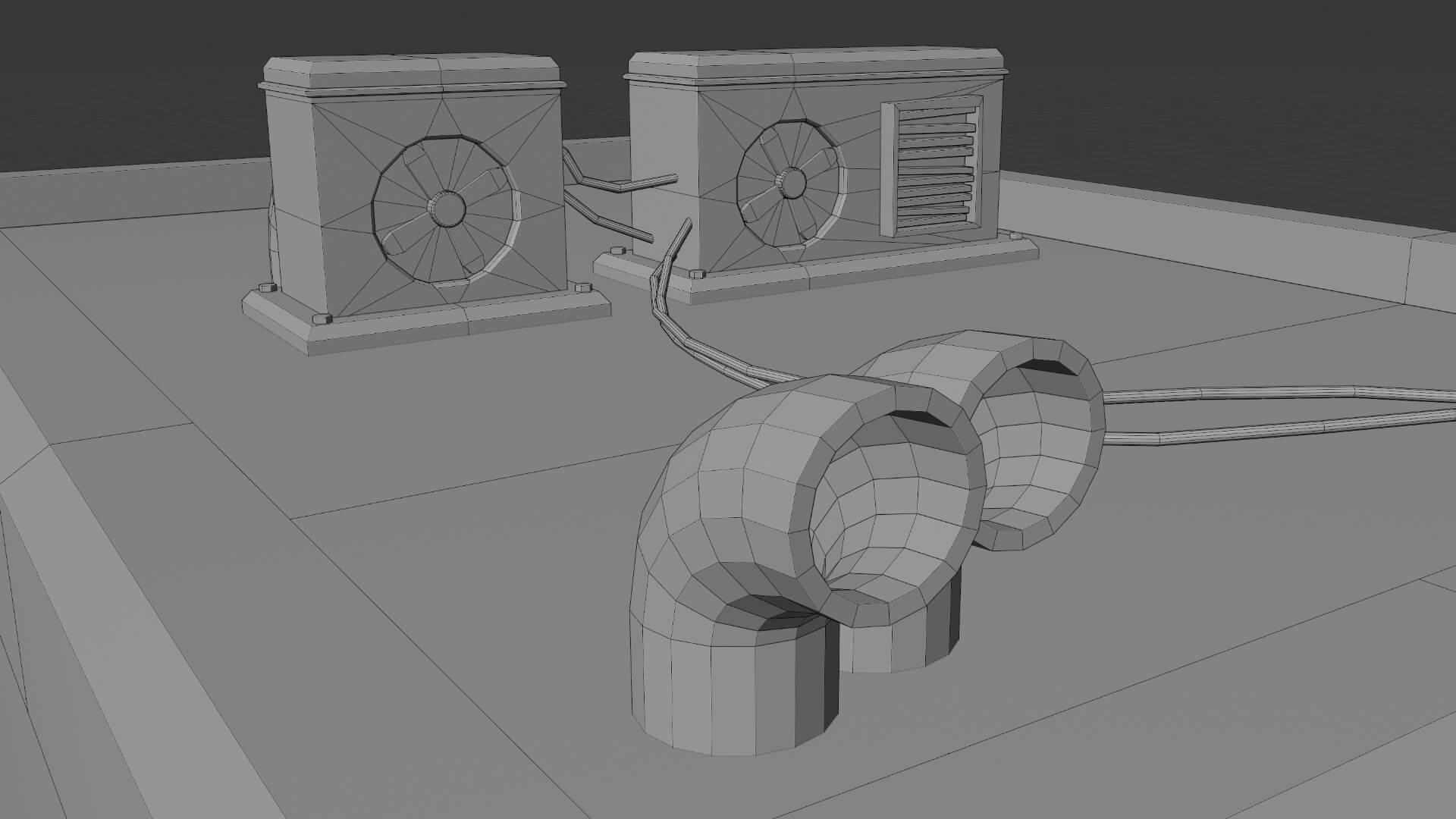 Tercer avance del curso, sigo avanzando en el modelado del diorama, y disfrutando mucho el proceso. En esta ocasión el ejercicio consistía en crear y agregarle más detalles a los aires acondicionados, como por ejemplo la ventilación, cables, tubos, etc.