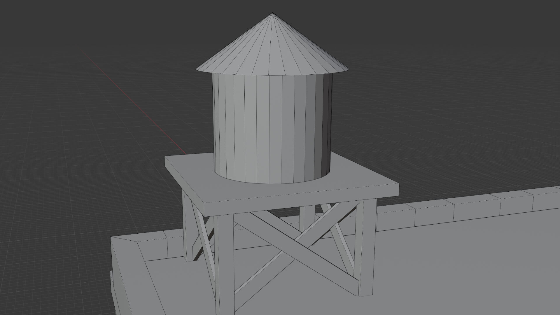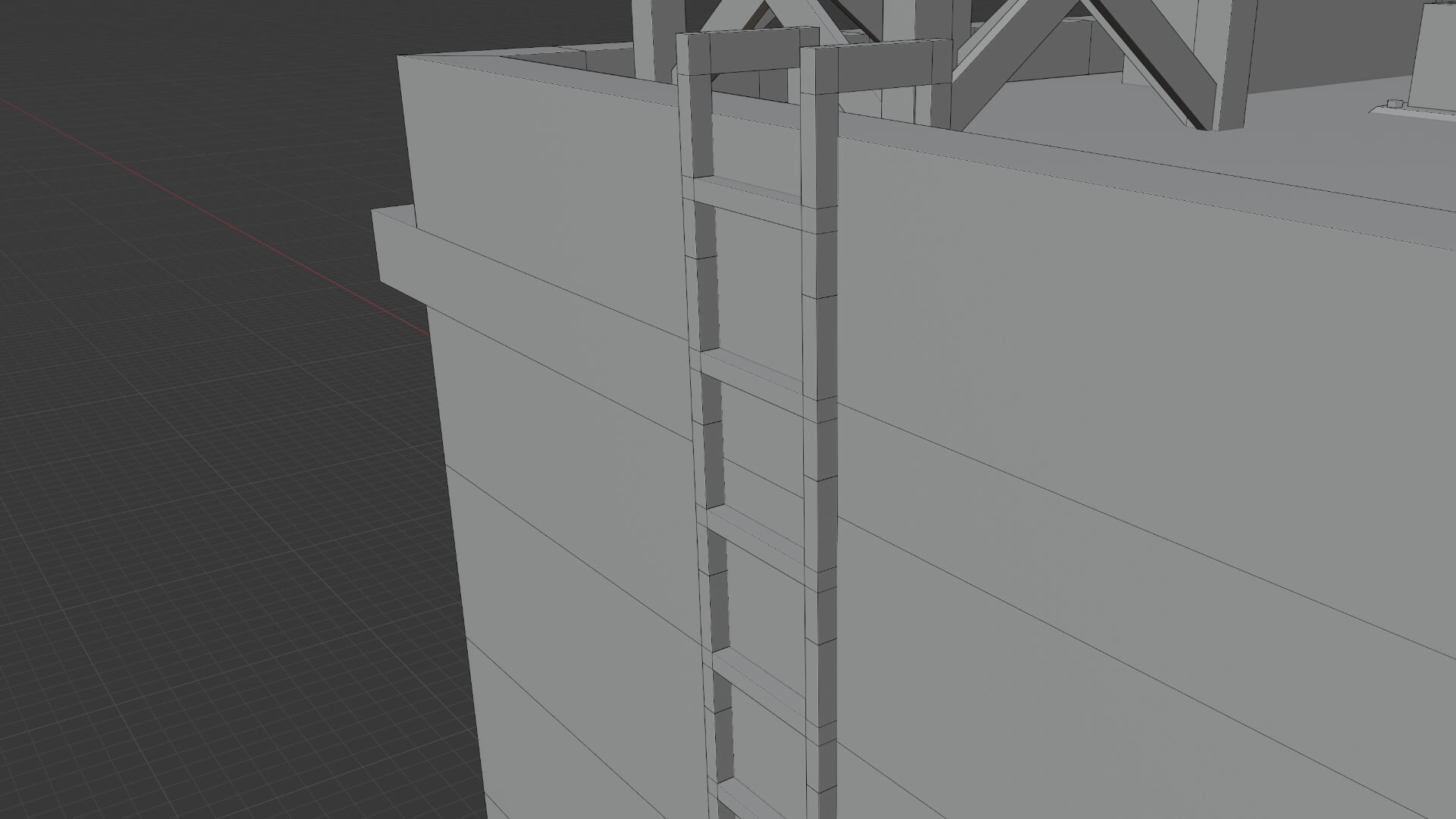 Then, I modeled the ventilation pipes of the buildings, the rooftop, the door, a water storage tank, another type of air conditioners with their respective cables, and a ladder.