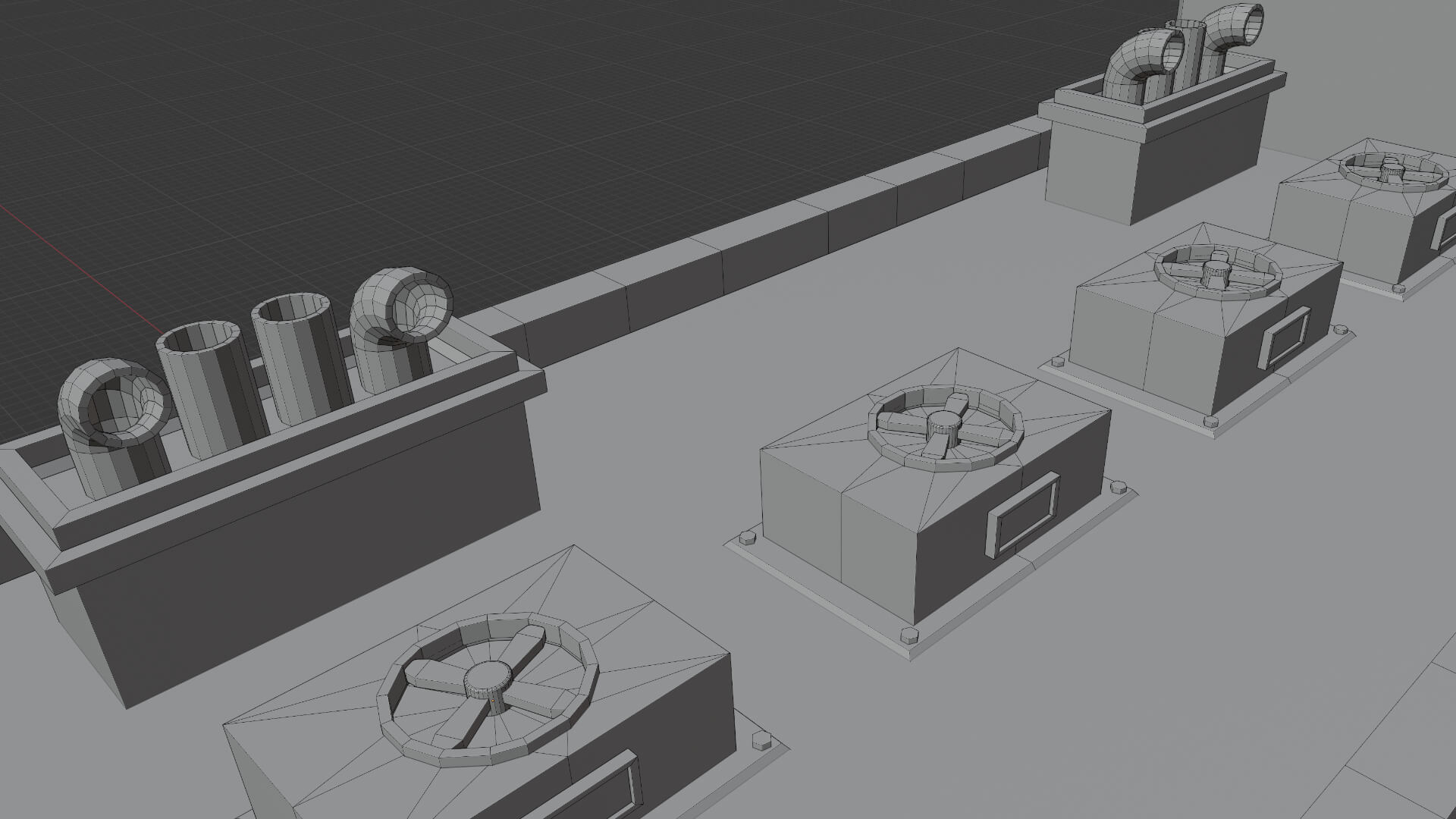 Third advancement on the course, I continue modeling the night diorama, and I am really enjoying the process. This time, the exercise involved creating and adding more details to the air conditioners, such as ventilation, cables, tubes, etc.