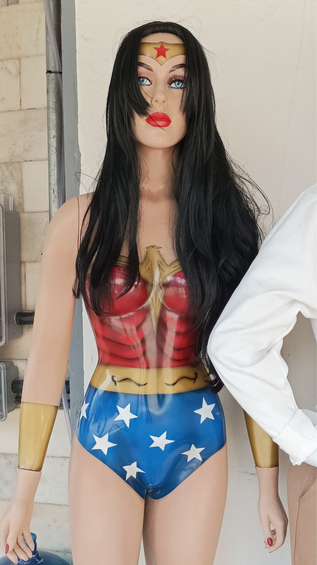 Luego de haber almorzado, comenzamos a recorrer los diferentes negocios a lo largo del Chuy, en uno encontré un maniquí de la Mujer Maravilla que me llamó la atención.
