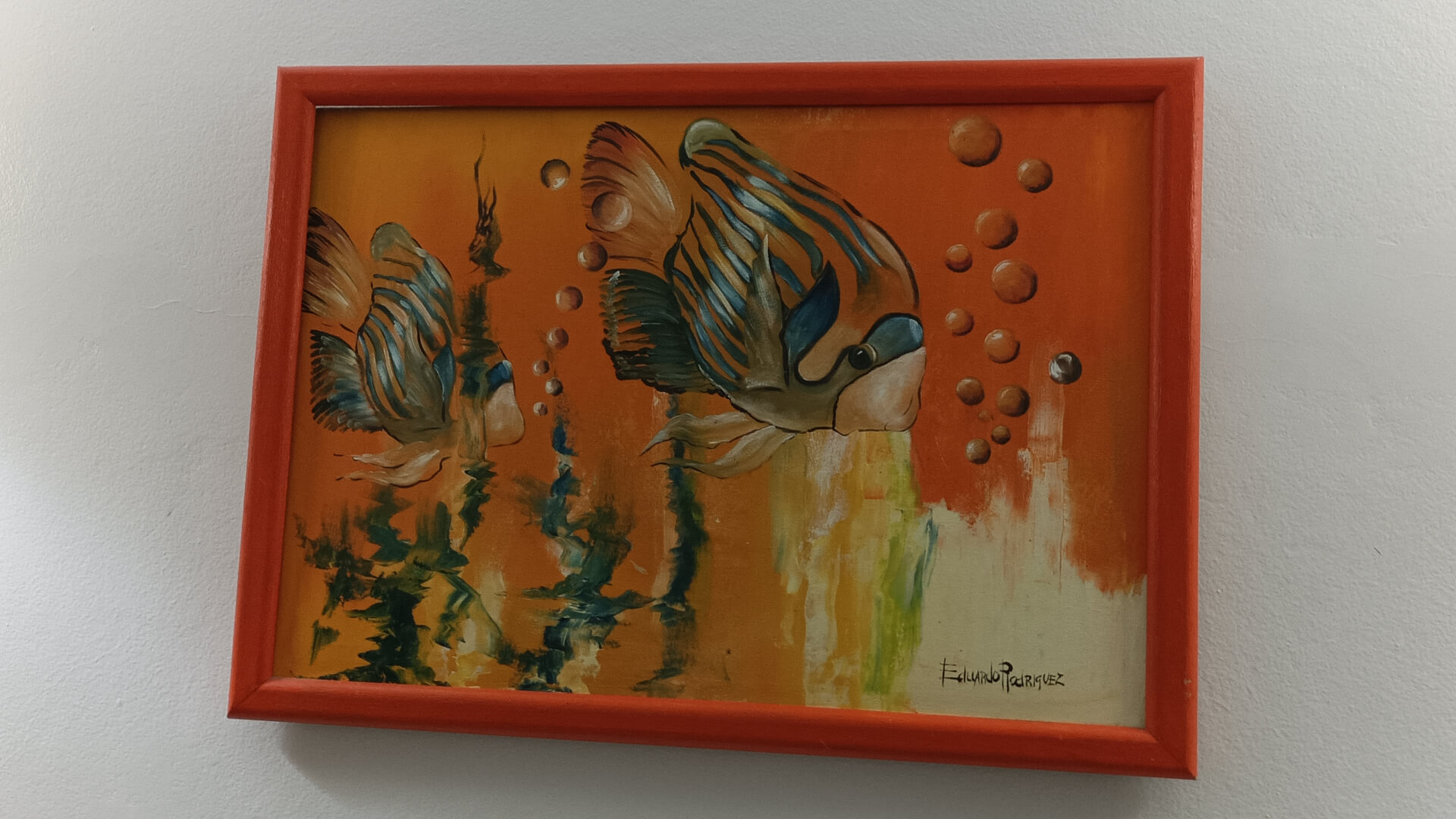After several hours walking and shopping for different things in the stores at very low prices, we headed to the hotel where we stayed. Inside, we could see different types of paintings near the entrance.