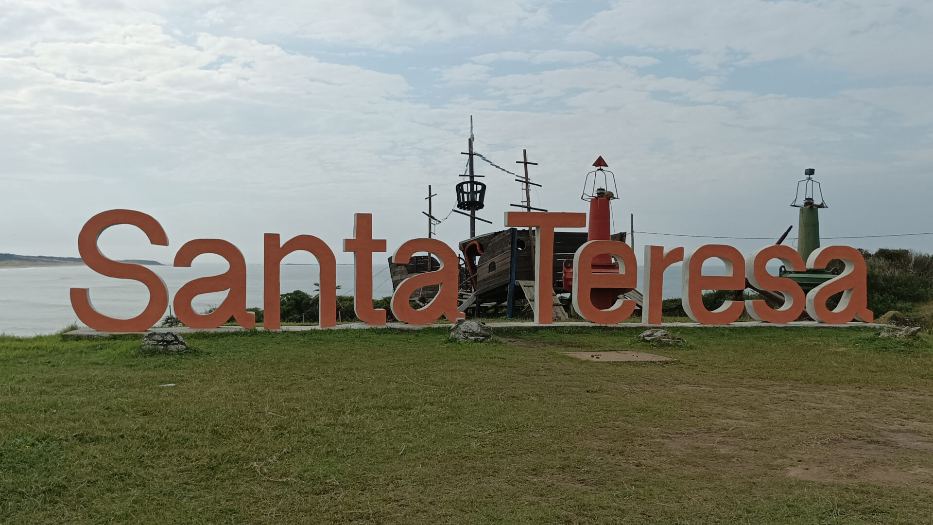 Ya por último y también muy cerca de la costa, el letrero gigante de Santa Teresa, detrás de las letras se podía observar un barco chico de decoración.