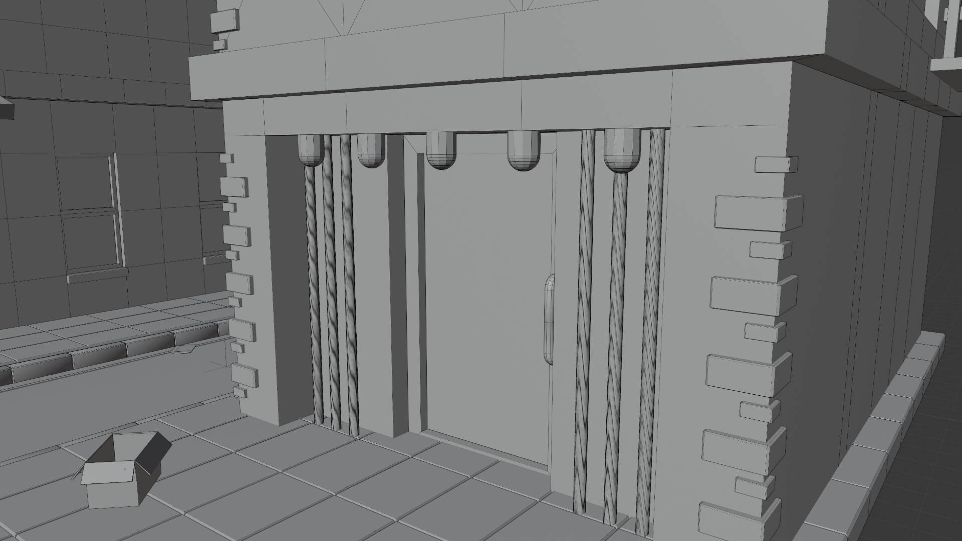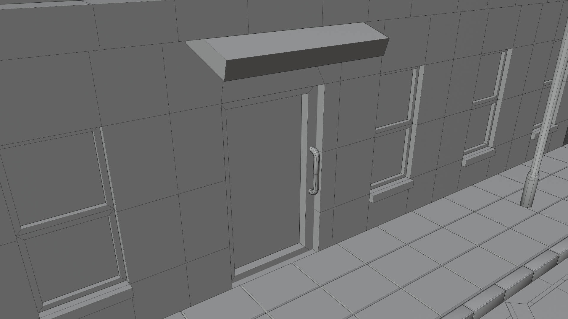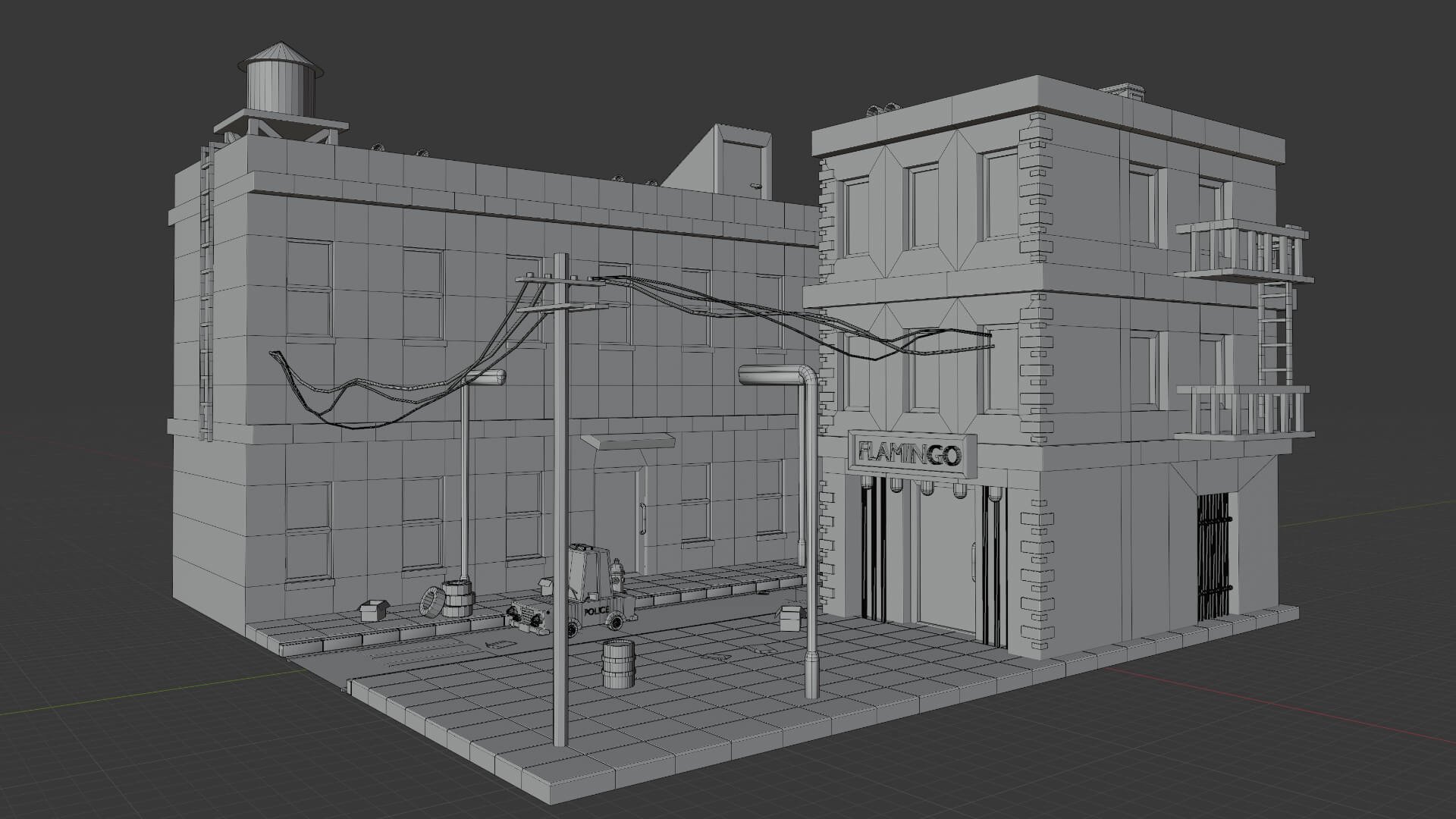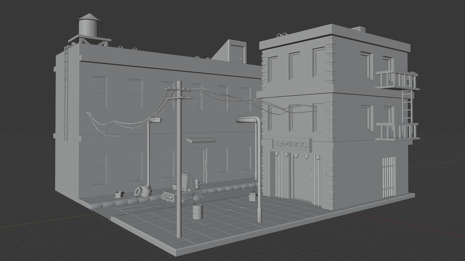 En esta ocasión avancé bastante en la sección dónde estoy, e hice varias cosas nuevas, por ejemplo, una puerta para un edificio, hice ladrillos en los costados del otro edificio, escaleras de emergencia, ventanas, la entrada a un club nocturno con luces, un cartel del lugar, y una puerta trasera al costado del club.