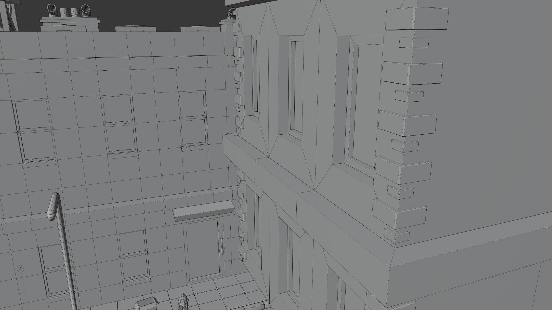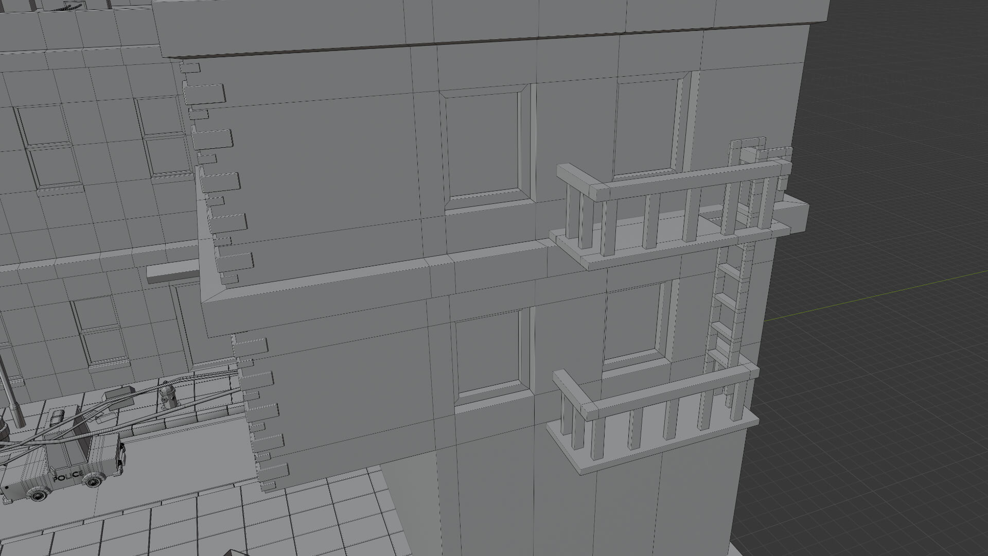 This time I made quite a bit of progress in the section where I am, and did several new things, for example, a door for a building, I made bricks on the sides of the other building, emergency stairs, windows, the entrance to a nightclub with lights, a sign of the place, and a back door on the side of the club.