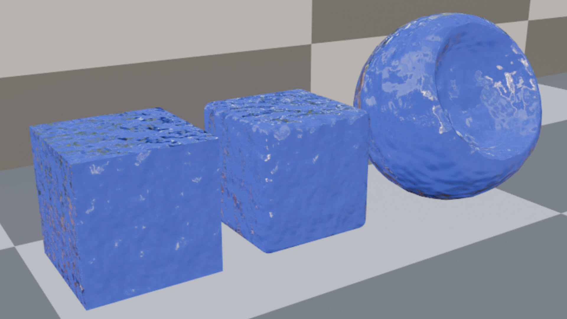 Transmission: Esta opción modifica la refracción de la superficie, generando así un efecto de espejo o cristal. Al combinarlo con Roughness genera un desenfoque como si se tratara de un vidrio esmerilado.