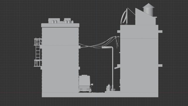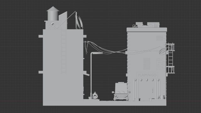 Aquí muestro los modelos finales del diorama, sin luces ni materiales, para mostrar cómo es por dentro y ver el entorno.