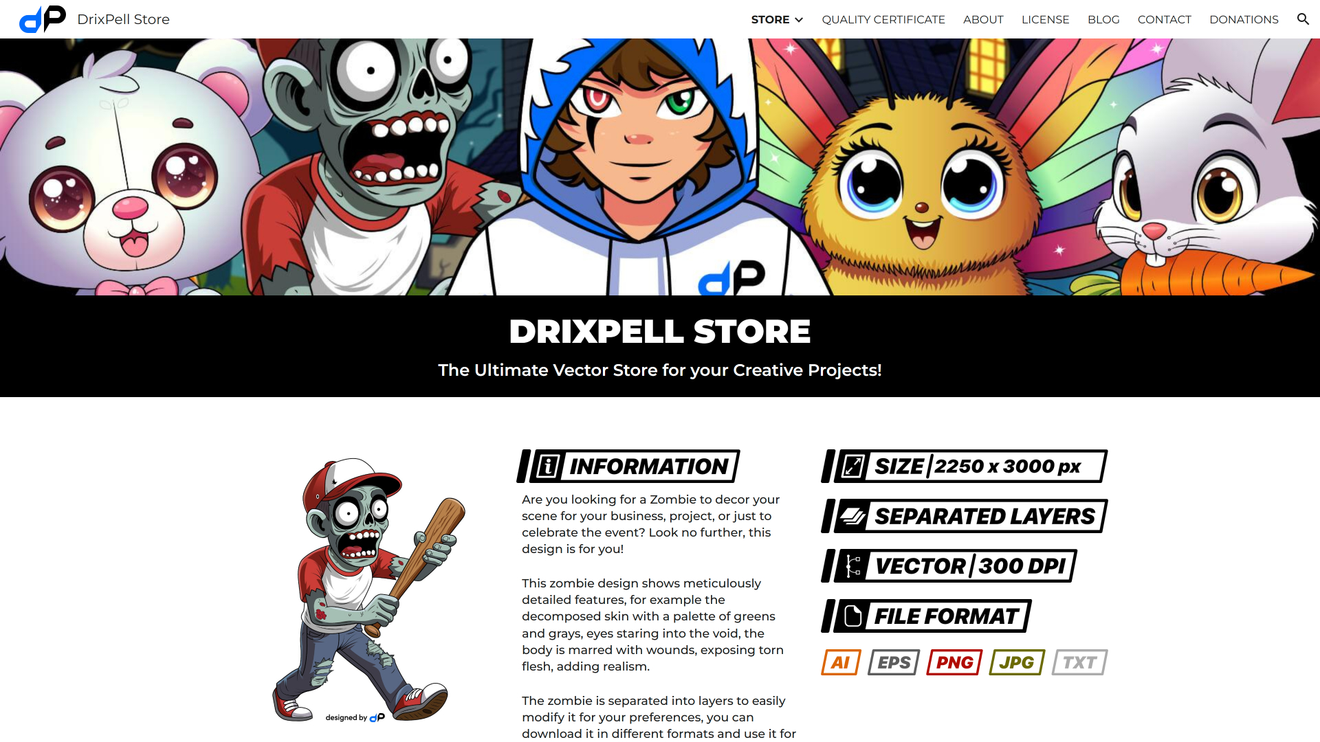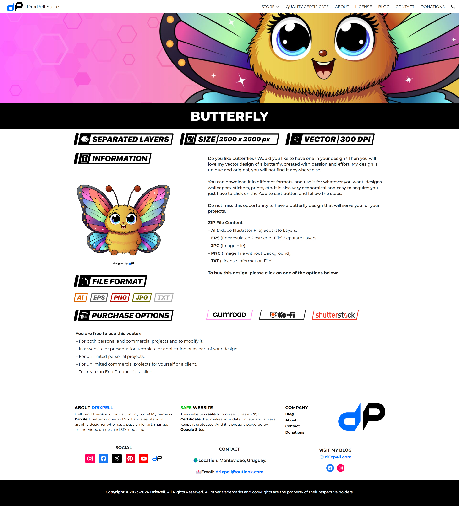 Now you will be able to see more information regarding designs such as the DPI, size, format of the files, etc. In addition to that, you will find the buttons to buy them in a more graphic way.