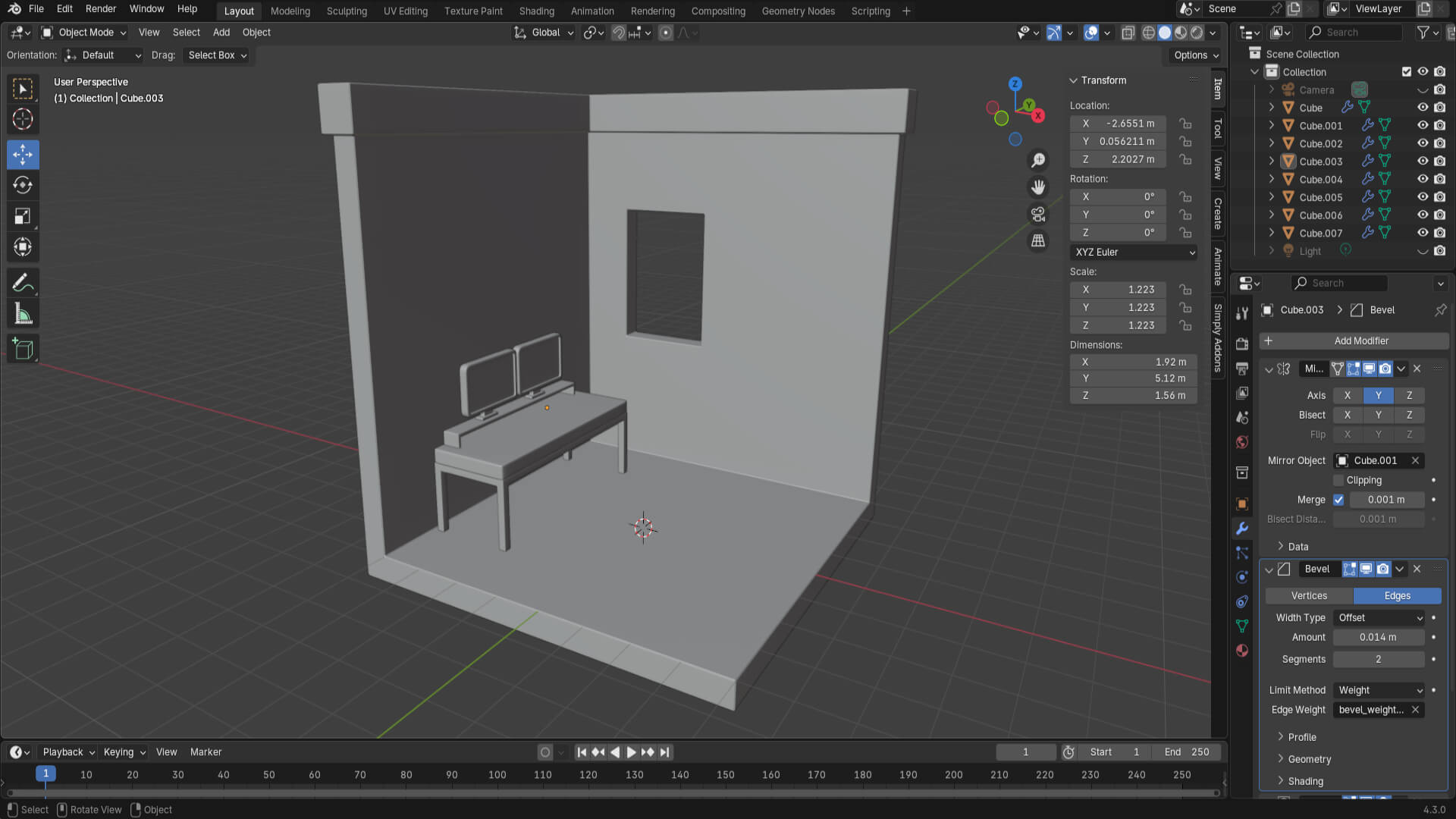 I started a new section of the course! The creation of a diurnal diorama which will be an interior room, using what I learned in the previous section about subdivision tools.