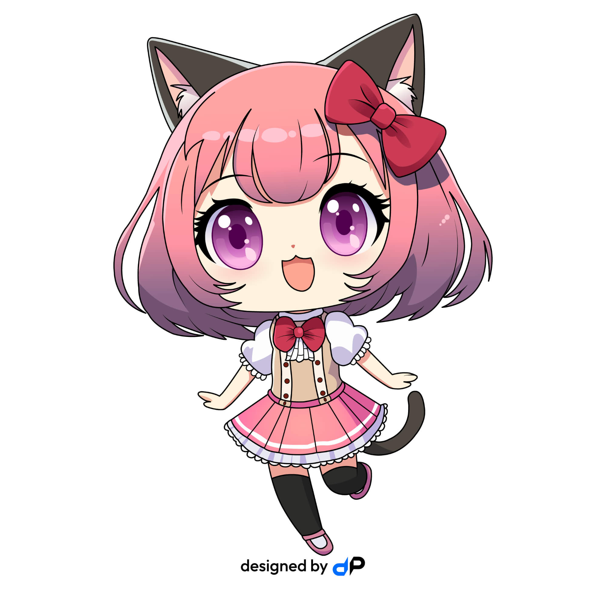 This captivating vector design showcases a charming manga-style cat girl, designed with attention to detail for an eye-catching aesthetic. With vibrant colors, its cuteness will make it ideal for projects that need a lively and enchanting character.
